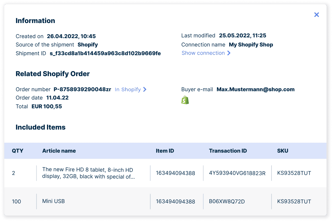 Regardless of your order volume, you can use the integration to ship to your customers quickly and easily at the best value for money – nationally and worldwide.